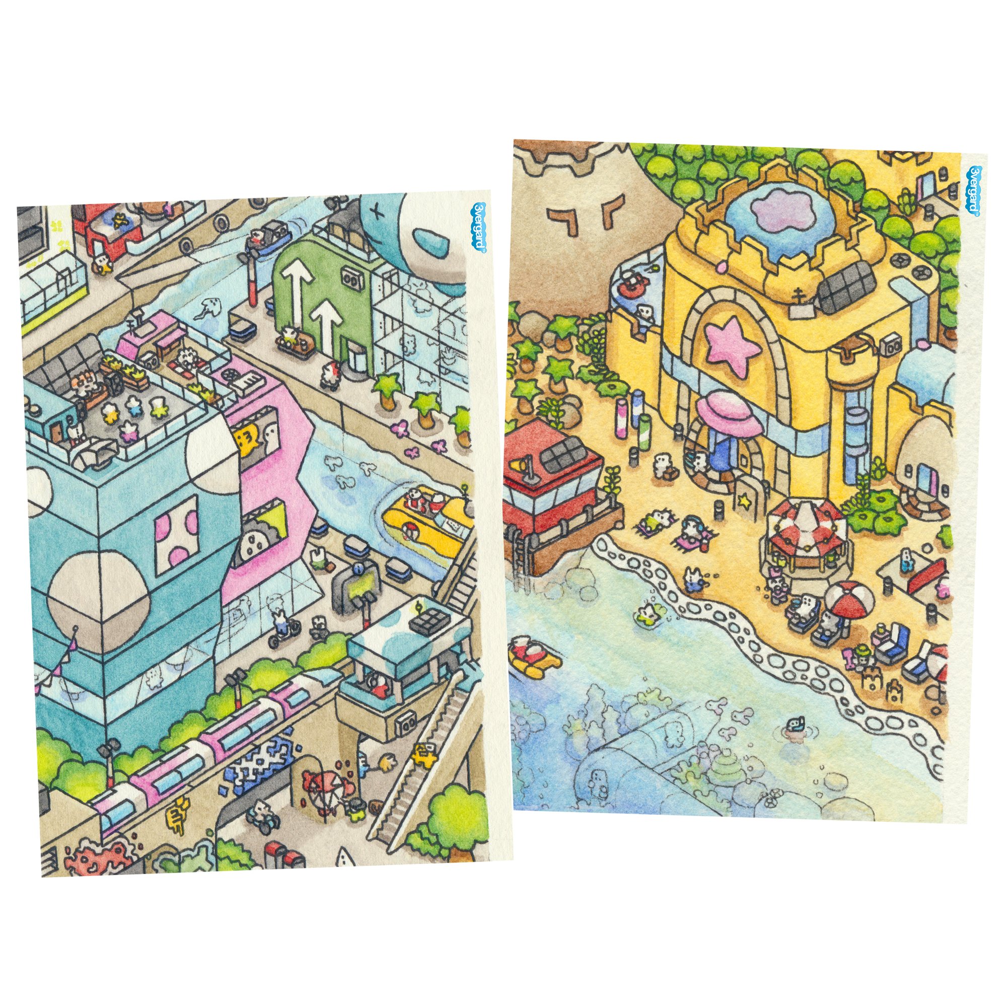 isoWorld I & II -- Original watercolour artworks :3